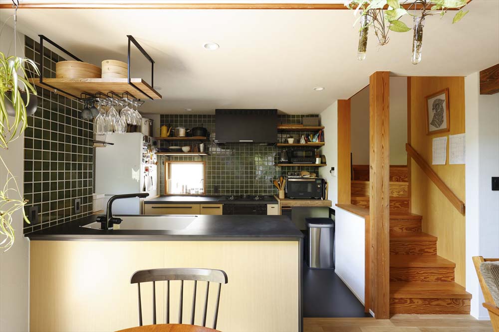 その後、外観がおしゃれで内装に自然素材が多用された中古の一戸建てと出会い、同行したスタイル工房の担当者からも構造面などで太鼓判を押され、購入することに。リノベのテーマになったのは「植物ファースト」。観葉植物を育てるのが好きなIさん&Aさんにとって、植物を並べたり吊るしたりできる場所を設けることが何よりも優先したい希望のひとつだった。ほかにも、2人で同時に作業ができる広いキッチン、玄関近くの土間収納とウォークインクローゼット、それぞれのワークスペースといった具体的な要望もプランナーに伝えた。