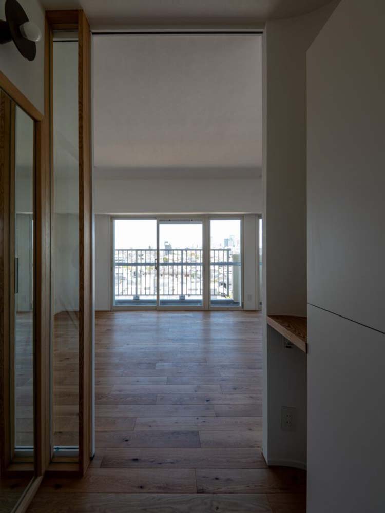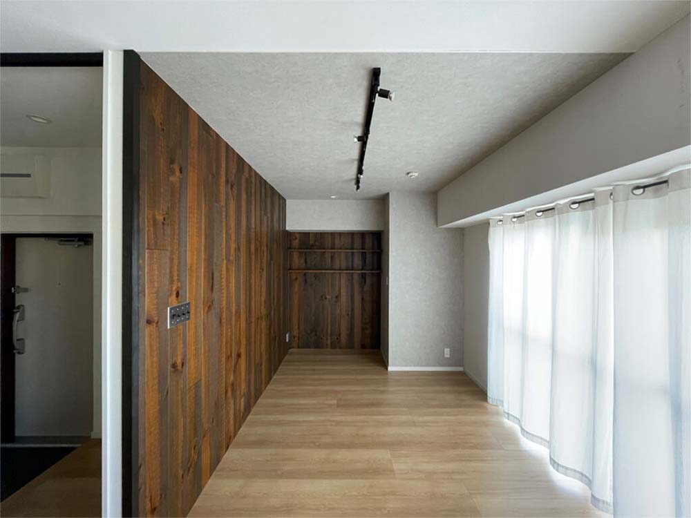 都心に建つ、眺めのよいマンションの一室。54㎡の角部屋、既存の間取りは2LDKで、比較的最近リノベーションされた住戸のため状態もまずまずでした。しかし面積に対して部屋割りが細かく、やや圧迫感があったことから、全面的なリノベーションを実施することに。設計・施工はエキップが担当しました。