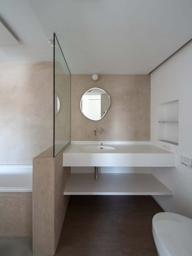 どこに居ても、自然光や屋外の心地よさを感じられる住まいですね。視線の抜けがあちこちにあるので、実際の面積以上の広がりが感じられます。繊細な白とベージュ、温かみのある木色、そこに光が加わって、表情豊かな住まいになっています。