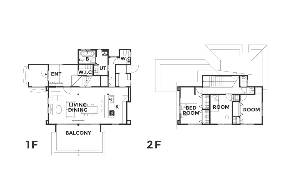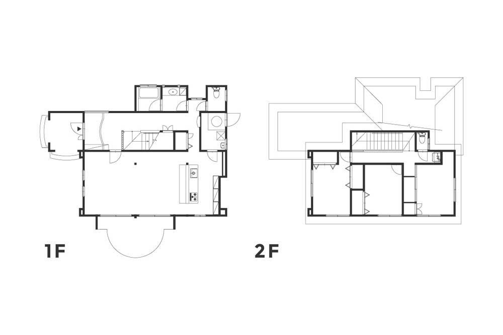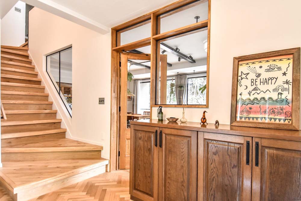 間取りは大きく変えず、1階はLDKと水まわり、2階は親子の個室とワークスペースに。階段を現しにしてガラスの室内窓を設けることで、開放感あふれる住まいに生まれ変わっています。