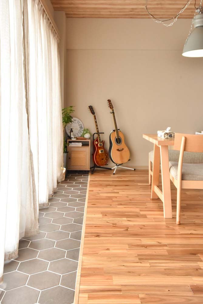 インテリアは、明るい木目を基調にしたナチュラルなテイスト。こだわりのペンダントライトや壁タイル、ソファなどの家具で、シンプルな空間に個性をプラスしています。エントランスやベッドルームの一部を2人のDIYで仕上げるなど、好きなものに囲まれた心地よい住まいをつくり上げました。