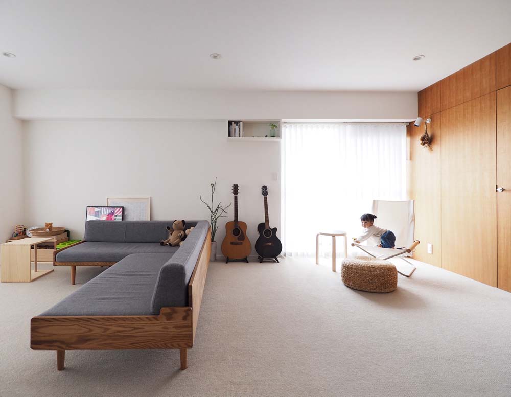 コンセプトは「空間の中に少し余白を残すこと」。家具をたくさん置くのではなく、部屋に合わせて収納家具をオーダーメイドすることで、ゆとりのある空間をつくりました。
