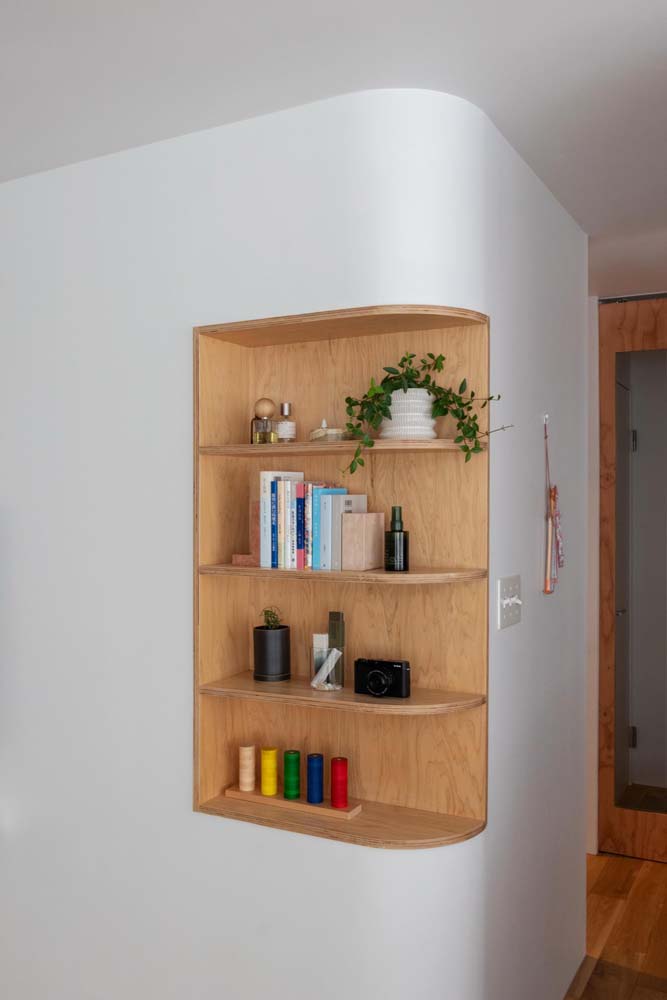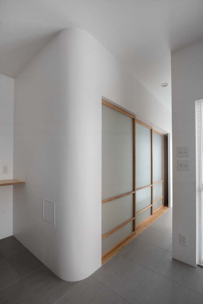 LDKや寝室をつないでいるのは、アールのデザイン。リビングの段差や各部屋の曲がり角に取り入れ、柔らかな立体感を生み出しました。