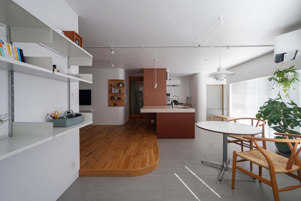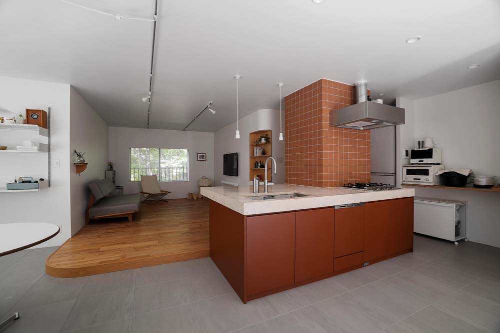 テラコッタ色のアイランドキッチンを主役に。家づくりのストーリーを感じさせるリノベーションプラン