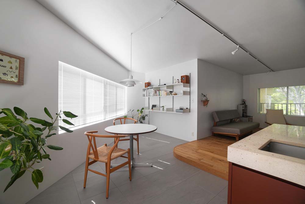 テラコッタ色のタイルを使用した外観と緑豊かな共用広場に惹かれ、閑静な住宅地にある低層マンションを購入したKさん夫妻。インテリアや空間デザインにこだわりがあった夫妻は、家づくりを考え始めた当初、注文住宅を検討していました。しかし2人の通勤に便利なエリアでは良い土地が見つからず、マンションリノベーションに方向転換することに。