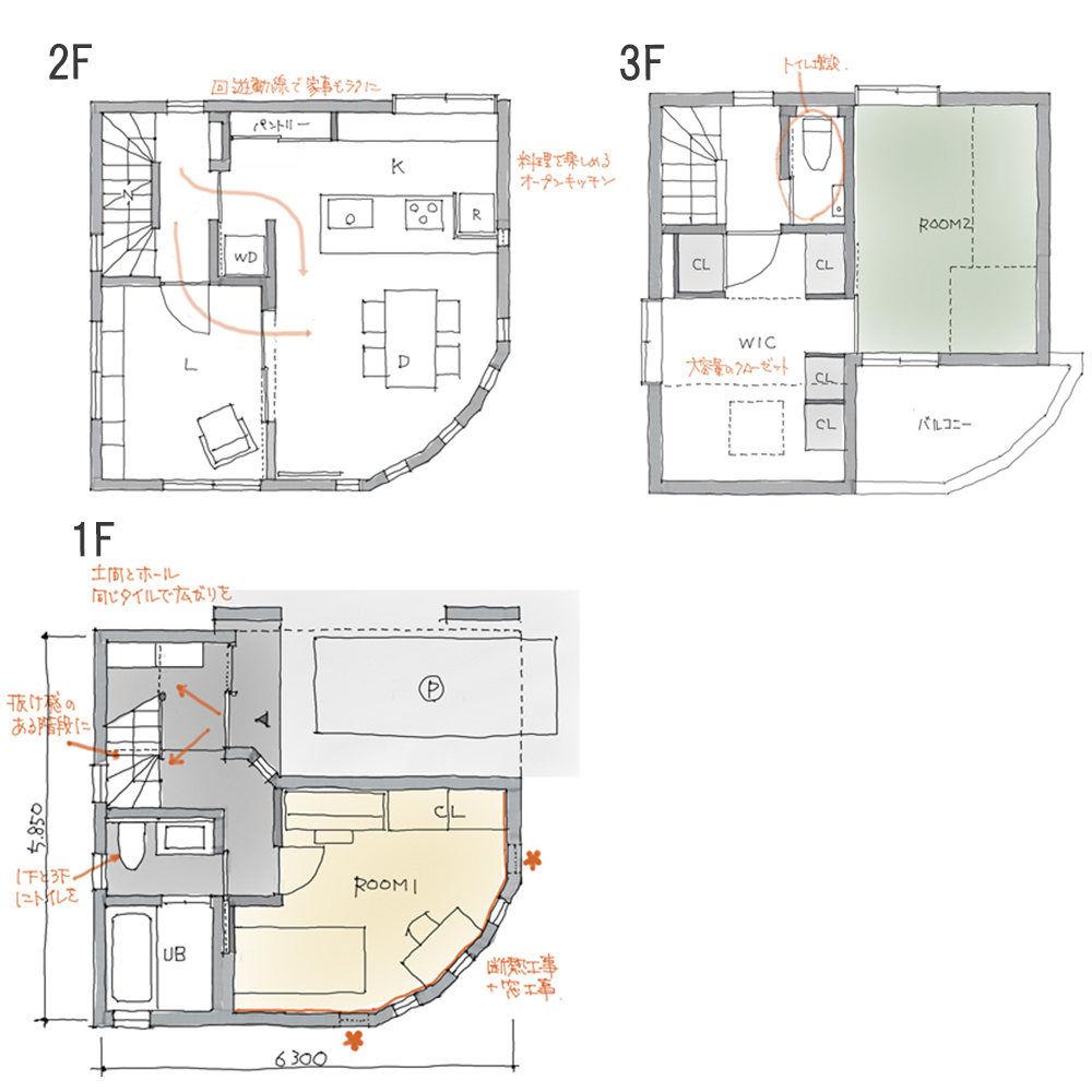 明るくオープンなキッチンを中心に、親子のスペース配分や生活動線が改善された間取りが魅力的です。インテリアも変えて、これまで愛着をもてなかった家が、これからも長く住みたい、大好きな空間に生まれ変わっていますね。
