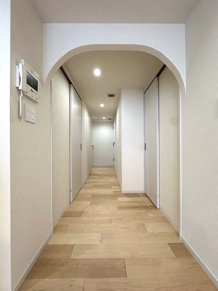 廊下や収納などの安全性や利便性をしっかり確保したリノベーションですね。住みやすかった間取りはほぼそのままに、動線がスムーズになって快適さが向上しています。キッチンなどの水まわりも使いやすそうです。