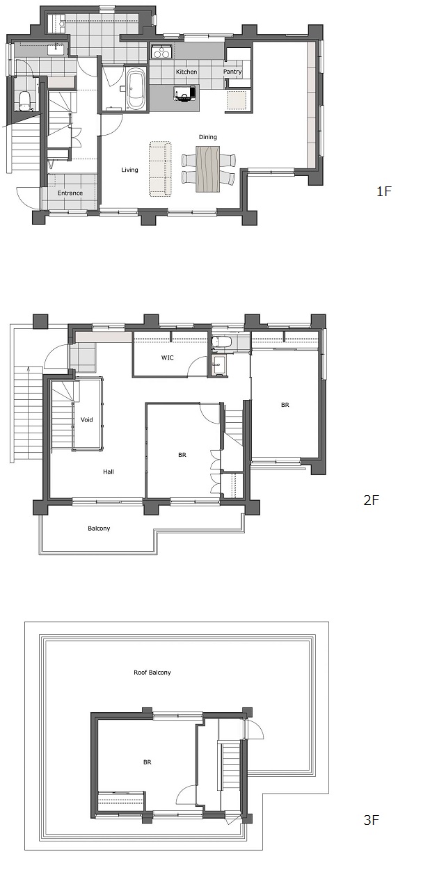 3階は、個室+ルーフバルコニー。ルーフバルコニーへのアクセス方法を改善することで、アウトドアリビングにするなど活用の幅を広げました。