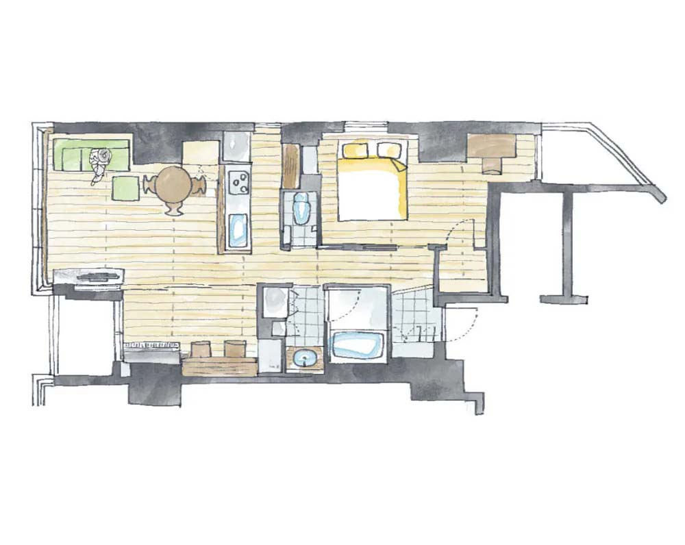 もともと同じマンションの別フロアの賃貸物件でくらしていたAさん夫妻。ロケーションや生活環境が気に入っていたので、今の家が売り出されたことを知るや否や購入し、リノベーションすることに。「間取りも広さもまったく同じ。自分たちの家ができたのだから、インテリアを好きなようにしたいと思いました」。そこで間取りは変えず、内装と設備を刷新することに。設計・施工は、初期プランが気に入ったSHUKEN Reに依頼しました。