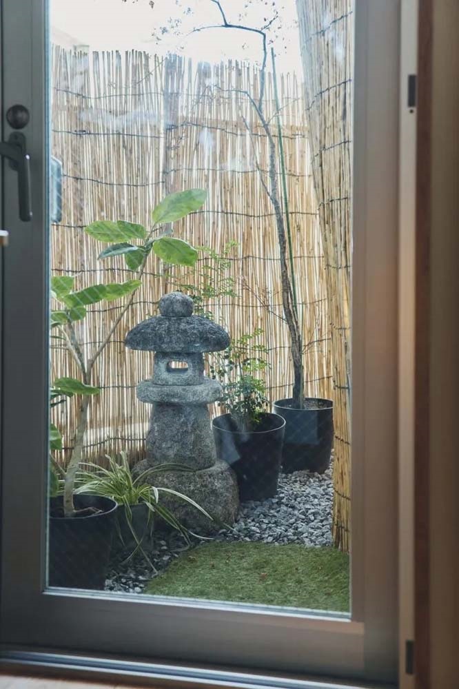 シンプルかつ上品な素材やデザインで構成することで、洗練された和洋折衷空間になっていますね。照明の配置とキャンドル色の光がくつろぎ感をグッと高めていると思います。手づくりの日本庭園も魅力的なインテリアです。