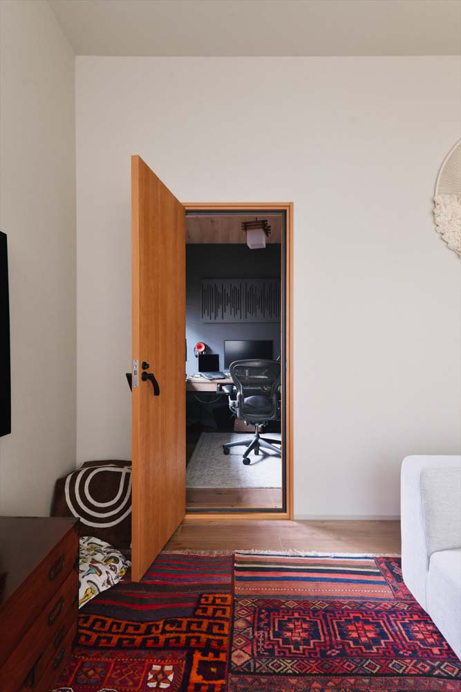 音楽関係の仕事に携わるHさんが周囲に気兼ねなく作業ができるよう、既製の防音材を使ってコストを抑えつつ、必要な防音レベルをクリアした。
