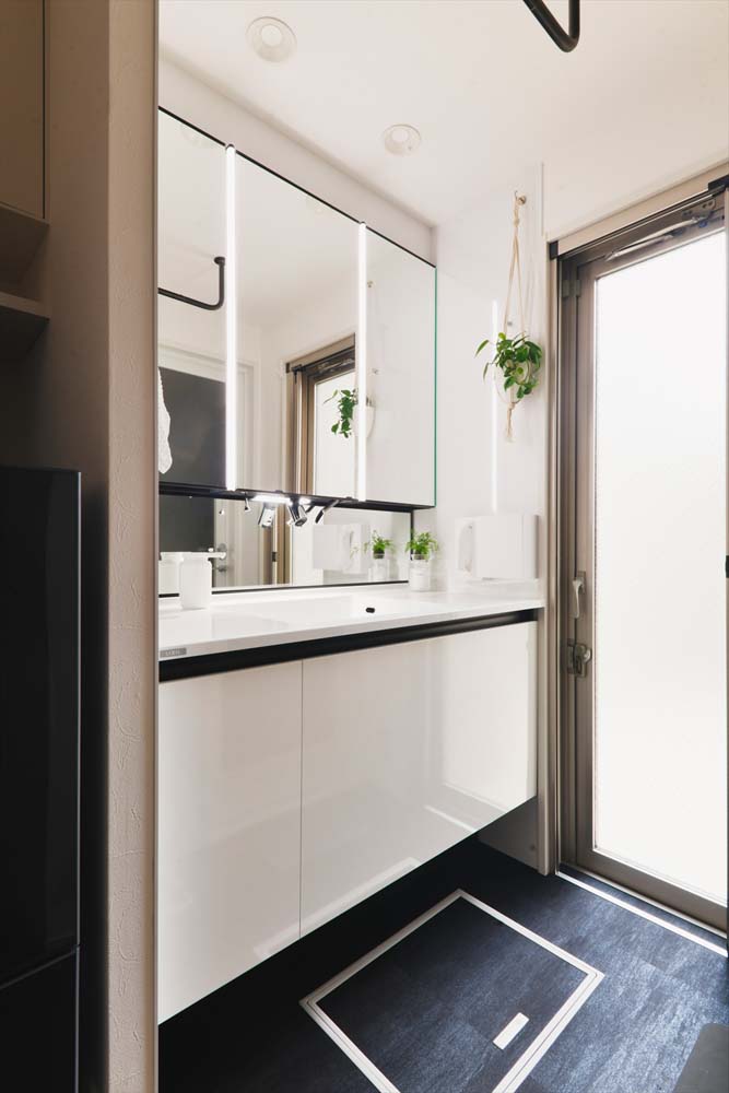 防音対策の一環で窓にはインナーサッシを追加。断熱性能も上がり、真夏や真冬も快適に過ごせる。水まわり空間は設備を一新して内装をモノトーンのモダンなイメージに。滑りにくい床材を選んだり、スキップフロアの階段にペット用の段差のゆるい階段を後付けしたりと、ともに暮らすペットの安全に配慮した工夫も施し、家族みんなが快適にくらせる住まいへと一新させた。