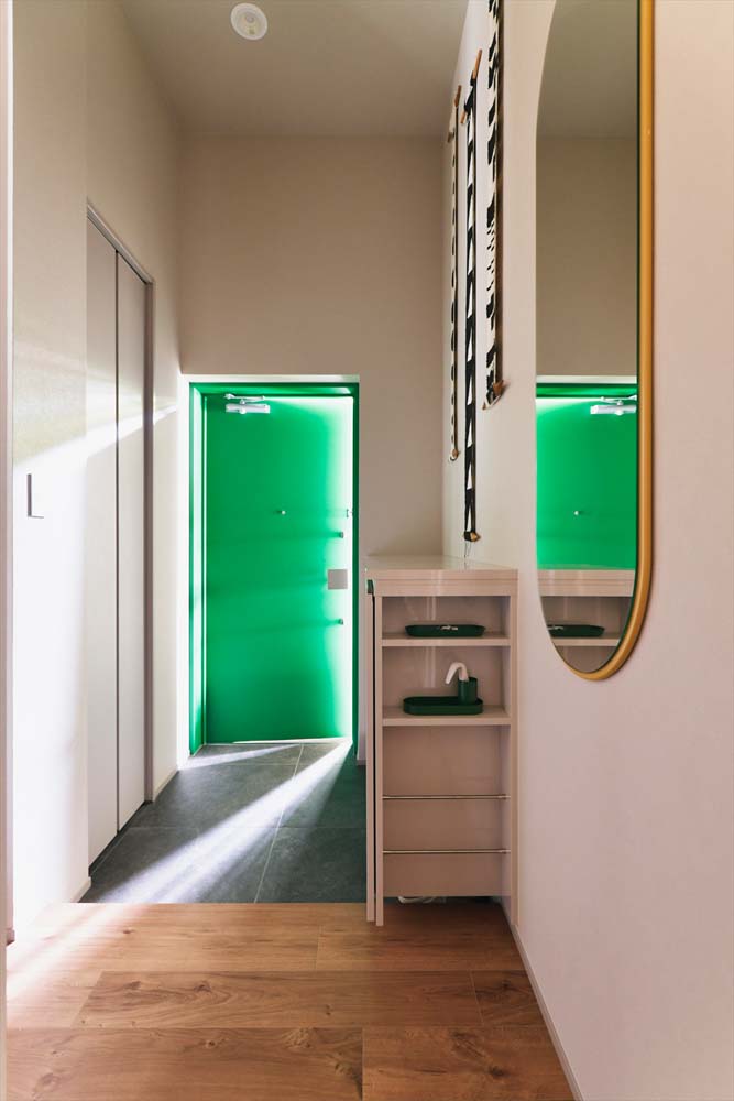 採用したいキッチンのシリーズがあったことから、そのキッチンをベースに内装を検討。音楽関係の仕事をするHさんのため、洋室の1つを防音仕様の仕事部屋にすることもテーマのひとつになった。