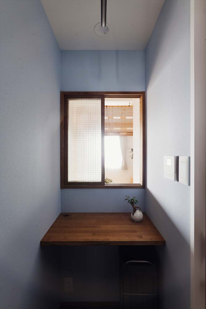 隣り合った洗面室と寝室は、既存の廊下側の出入り口のほかに、それぞれをつなぐ出入り口を新設。洗面室と寝室が直接行き来できるようになり、身支度や入浴後の動線がスムーズに。洗面室にはリビングとの間に開閉できる室内窓も設けたため、風通しも確保することができた。無事完成したSさんの新居には、家族や親戚が訪れることもしばしば。懐かしい部材を目にしながら、実家の思い出話に花を咲かせている。