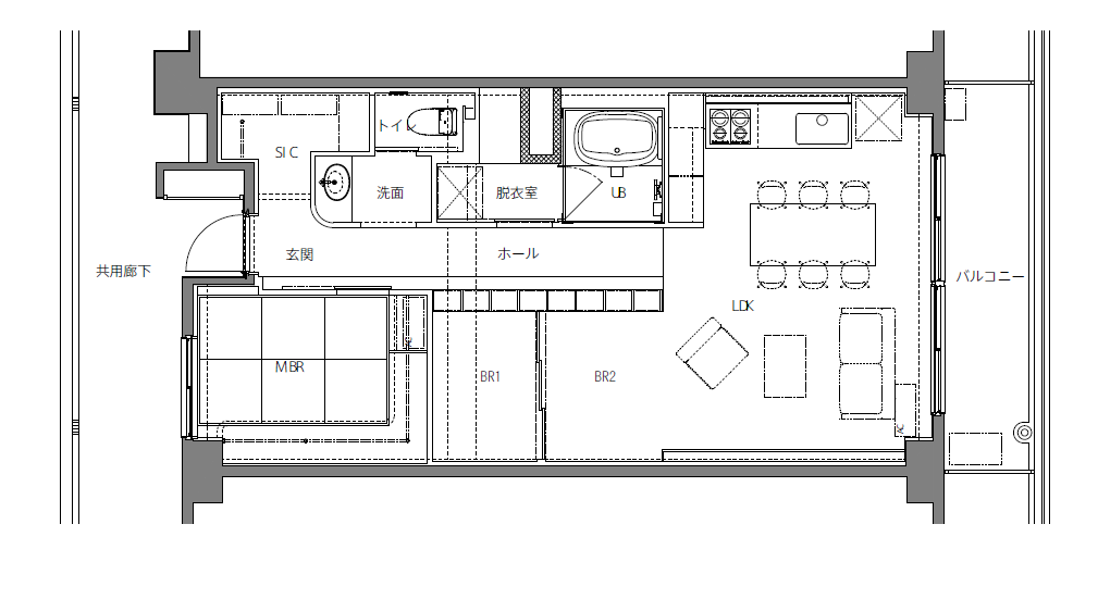 通り庭がつなぐマンションリノベーション。本棚&ベンチで廊下を機能的にデザイン!