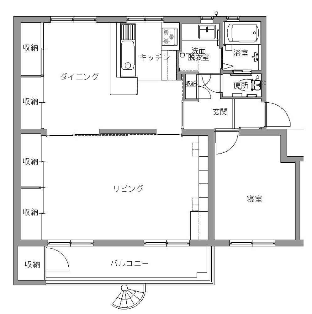 昭和40年代に建てられた3DKの団地。もともとマンションのように廊下で部屋が細かく区切られておらず、風通しのよい、のびやかな空間でした。施主は、3匹の猫たちと一緒に心地よくくらせる住まいをめざしてフルリノベーションを決意。設計と管理を吉永建築デザインスタジオに依頼しました。