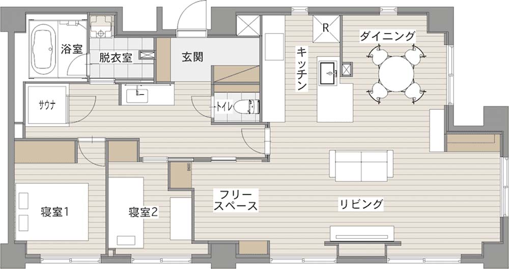 好きな居場所でリラックスするリビングに。念願のサウナも叶えた広々マンションリノベーション