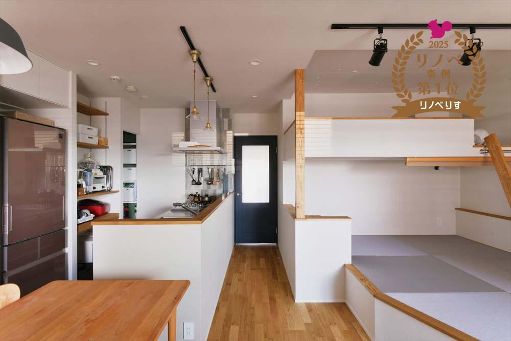 2025年の人気事例ランキング、いかかがでしたか? 多くの事例の中で、ロフトと小上がりを組み合わせてリビングを柔軟に活用するリノベーションが注目を集めました。子ども部屋が2つ欲しい、収納スペースも増やしたい、という希望を、マンションでは難しい縦空間を有効に使う間取りで見事に実現。2位の洗面室からテレビを見る、3位のベッドと壁収納を一体化するもそうですが、一般的な心地よさではなく、自分や家族の住まい方にフィットさせたリノベーションプランがみなさんの心に残ったのだと思います。 自分だけの斬新なアイデアを形にできるのも、リノベーションの醍醐味。どんな建物でもできることはたくさんあるので、人気事例を参考に発想を広げてみましょう。「リノベりす」では、リノベーションのヒントが詰まった事例をたっぷりご紹介しています。来年もぜひご期待ください!